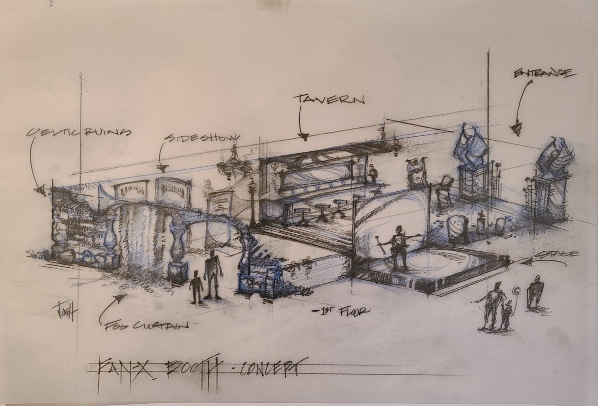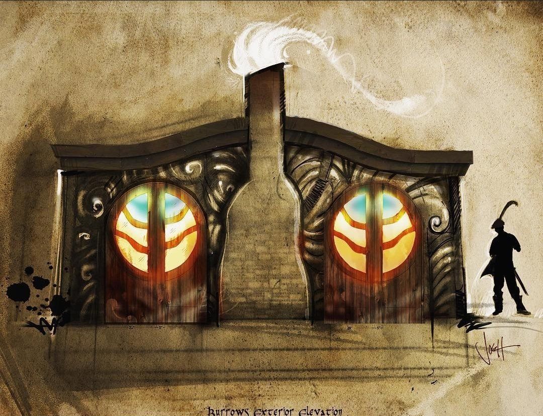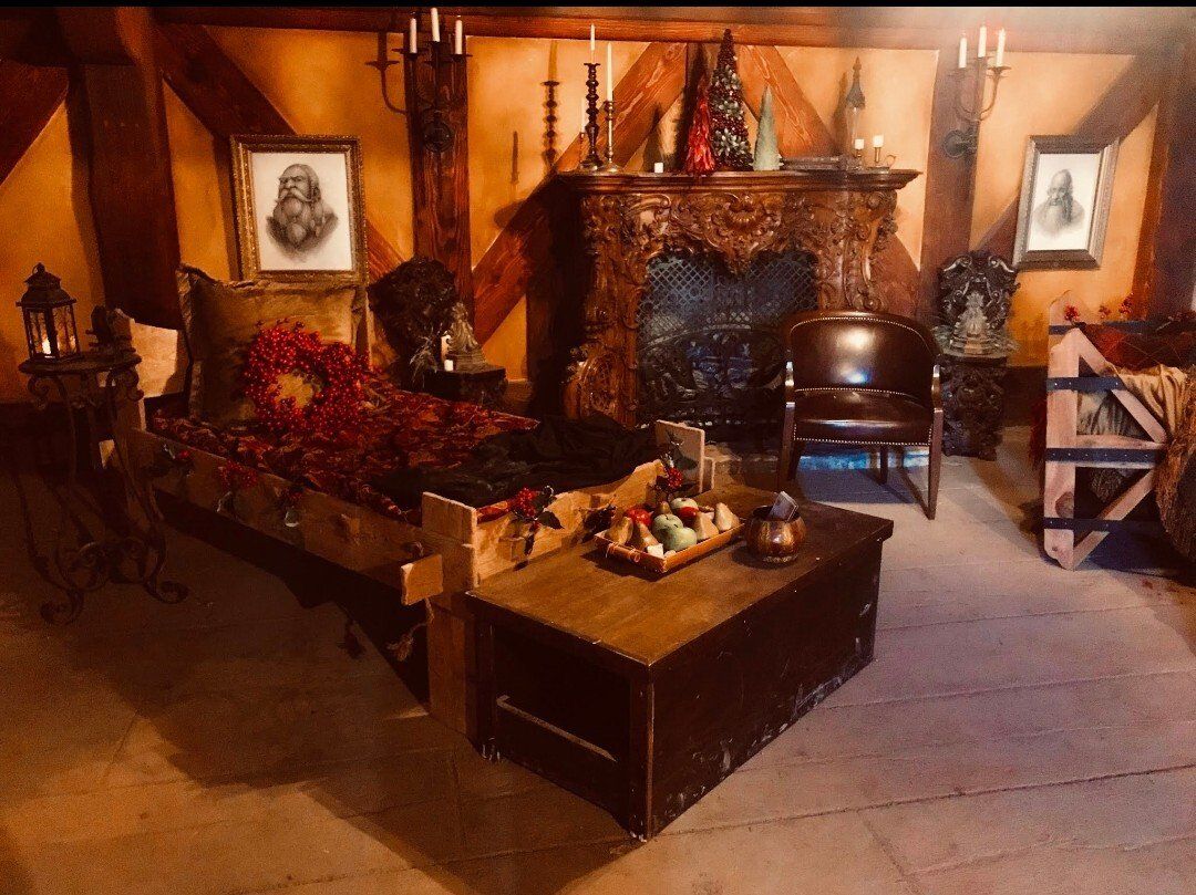 Under my direction, my team of 11 artists and designers build 7 sets (mostly interior but with exterior finishes), secured and aged all props, created a graphics and nomenclature guide for signage, procured and built signage, secured and decorated 5 themed renaissance tents, built and painted a massive pumpkin stage, designed and carved 2,500 jack o’ lanterns, designed and built our themed FanX booth, and all wayfinding for the park.